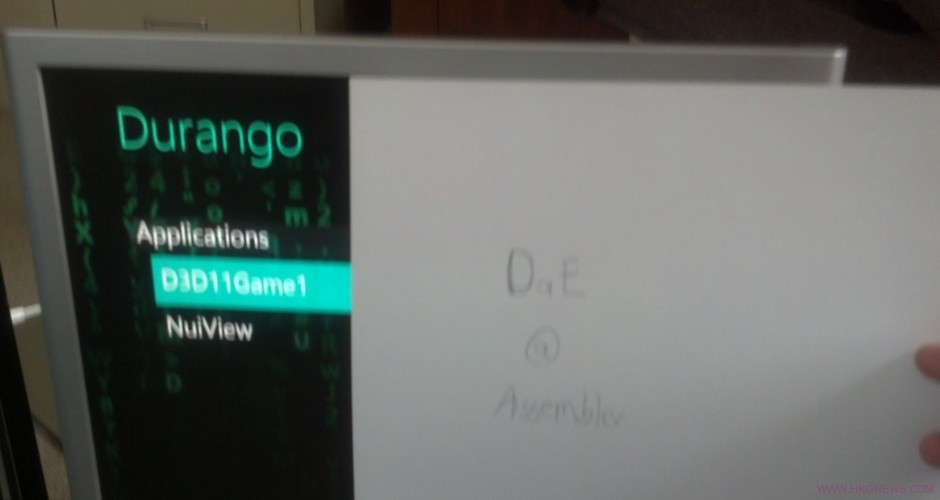 這款開發包被形容成“無名黑盒(anonymous-looking black box)”,和PC有著很多相似處。佔位符擋板上標著Durango(傳聞為Xbox 720的開發代號)。擋板兩個選項為D3D11Game1(據稱可以很輕鬆的移植PC遊戲)和NuiView(用於處理來自Kinect外設數據的工具)。