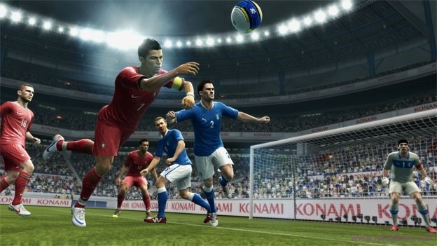 空間:我不知道是因為實況的場地大了還是球員小了,但遊戲對於球員和場地比例的科幻要更加精確一點。相比之下《FIFA》就顯得有一點擠,而在實況中我就有更多的空間做動作,打配合,而更大的足球本身也方便操作。