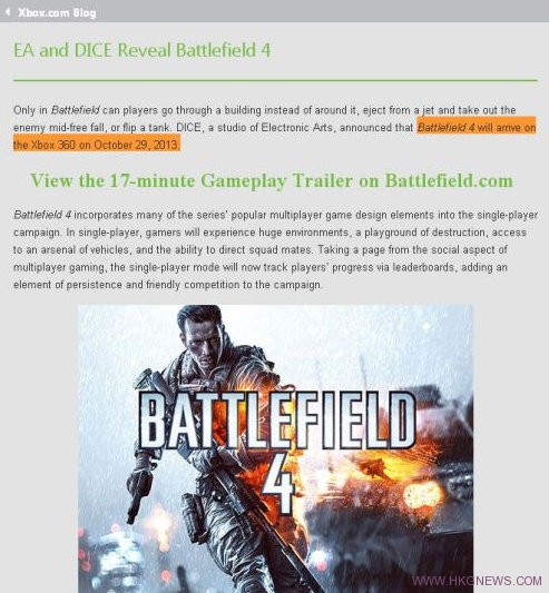 圖中黃色區域可見《Battlefield 4》將於10月29日登陸微軟Xbox360平台。(希望不是愚人節惡搞)