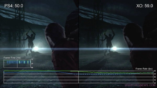 從下面的PS4和Xbox One的對比影片,我們可以看出《生化危機:啟示錄2》在PS4的幀數表現略遜,掉幀較為明顯,相比之下Xbox One要穩定一些。畫面方面PS4較亮些,Xbox One相對較暗。我們也希望遊戲在後面幾章的優化可以做得更好,使得次時代主機玩家能夠有更好的遊戲體驗。