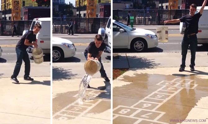 傾盆大雨可能會破壞你的好計劃,但是一點點的小雨為什麼不能讓你玩的很開心呢?事實上,來自西雅圖的魔術師兼藝術家Peregrine Church他創作的下雨時的街頭藝術(Rainworks),在晴天干燥的地面上是看不見的,只有下雨時才會顯露出來。