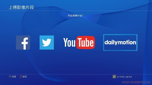 直播功能—— PS4的用戶們可以在Youtube上直播自己的遊戲進程,而其他玩家也可以在Youtube上觀看你正在進行的遊戲,可以在網頁和Youtube手機App上觀看。