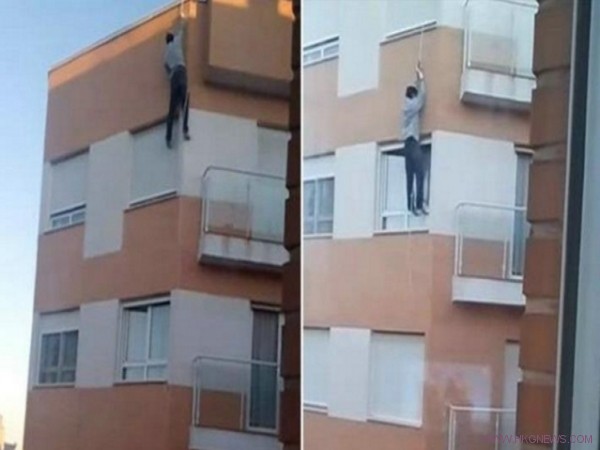 西班牙有名男子出門時忘了帶鑰匙,被鎖在門外,無法開門進屋,跟鄰居借了繩子,想從樓頂垂降到自己家裡,結果只下一層樓就因踩空,失手從四樓摔下喪命。