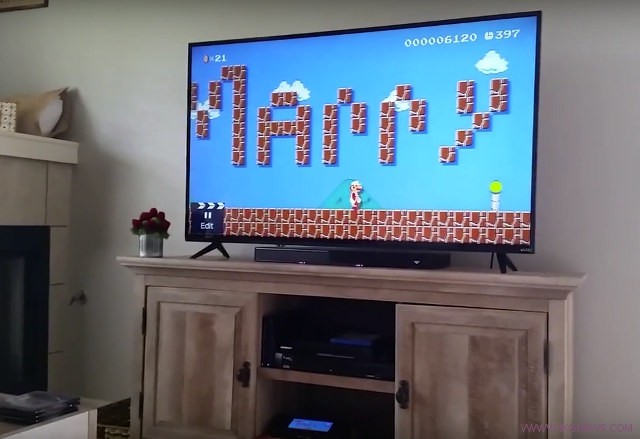 《超級馬里奧製造》允許玩家構建自己的關卡,Shane就在其中使用不同磚塊拼出了一句話“Pam Will You Marry Me?”。而Pam也非常激動地表示願意。另外這個自製關卡的ID是7A61-0000-0245-8DE8,有打算向自己的“Pam”求婚的玩家也可以用的上它。
