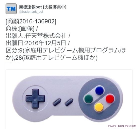 根據商標速報上的信息,任天堂是於12月5日正式提交的申請,種類分別為9(家用遊戲主機程序等)和28(家用遊戲主機等)。目前日本的博客上充滿了對這款商標的猜測,粉絲們認為這可能與懷舊SNES有關。