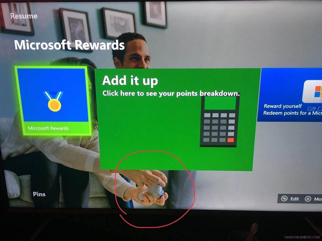 裝載了這款“獎勵”APP之後,玩家們躺在沙發上就能從微軟商店用積分兌換各類獎勵了。不過有眼尖的推特用戶發現了一些不大不小的問題,這位ID為Alex Larocque的網友就跟推表示,自己正要把這個App添加到內容塊時,他突然發現官方用了一張很奇妙的宣傳背景。