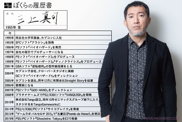 三上真司曾在Capcom貢獻16年,開發出了膾炙人口的《Resident Evil》系列,被譽為恐怖遊戲之父。在2005年離開Capcom後自組工作室Tango。Tango後來被美國媒體公司ZeniMax Media (Bethesda母公司)收購,並改名為Tango Gameworks 。在2020年公司再被Microsoft收購。