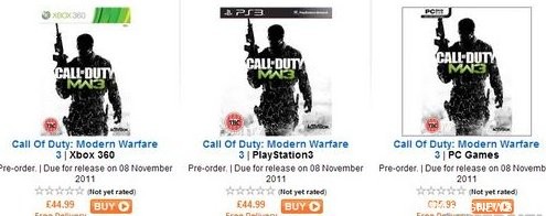 《Call of Duty: Modern Warfare 3》首周預訂為前作四倍必將大賣